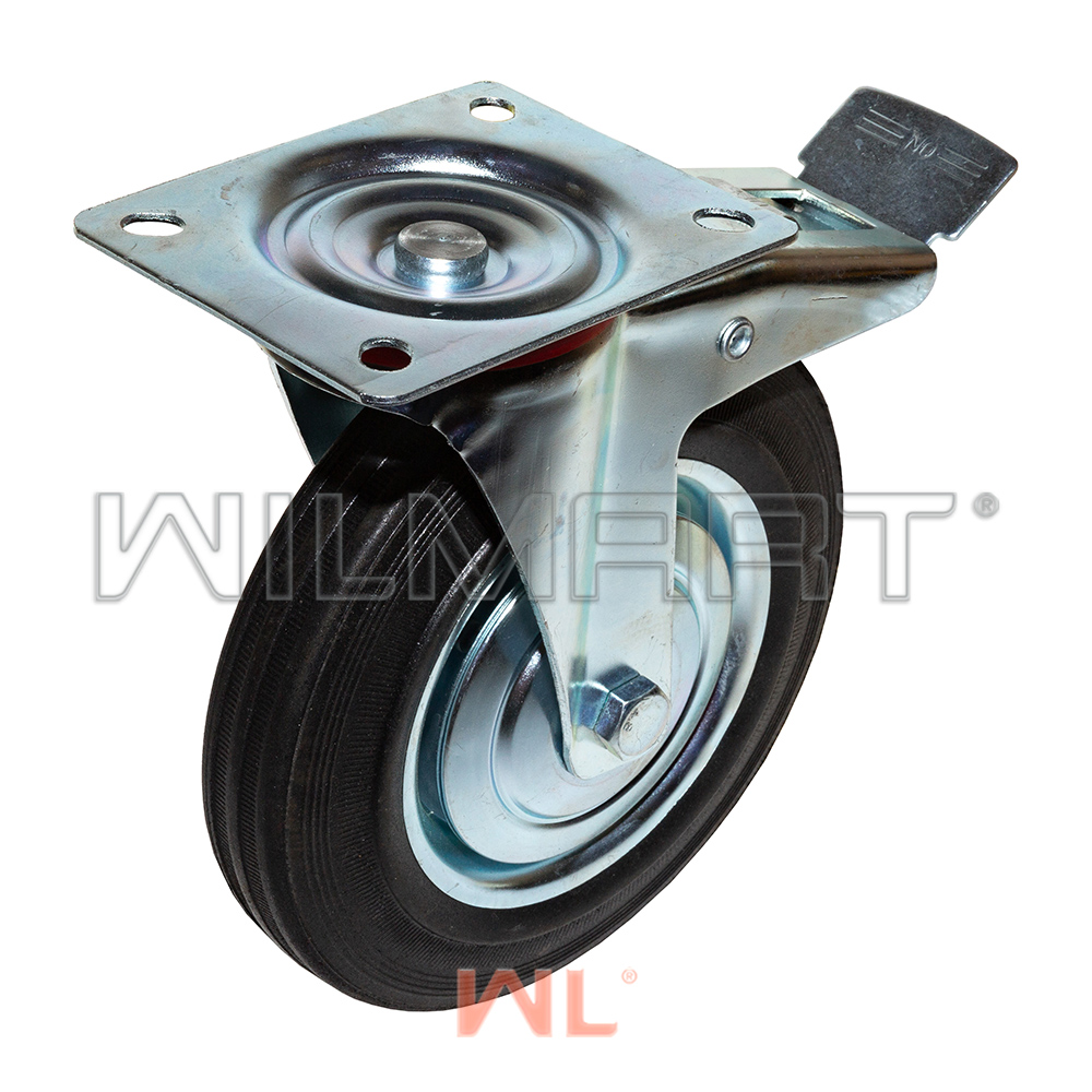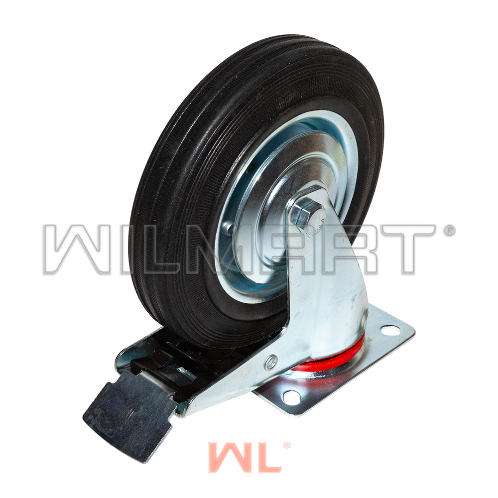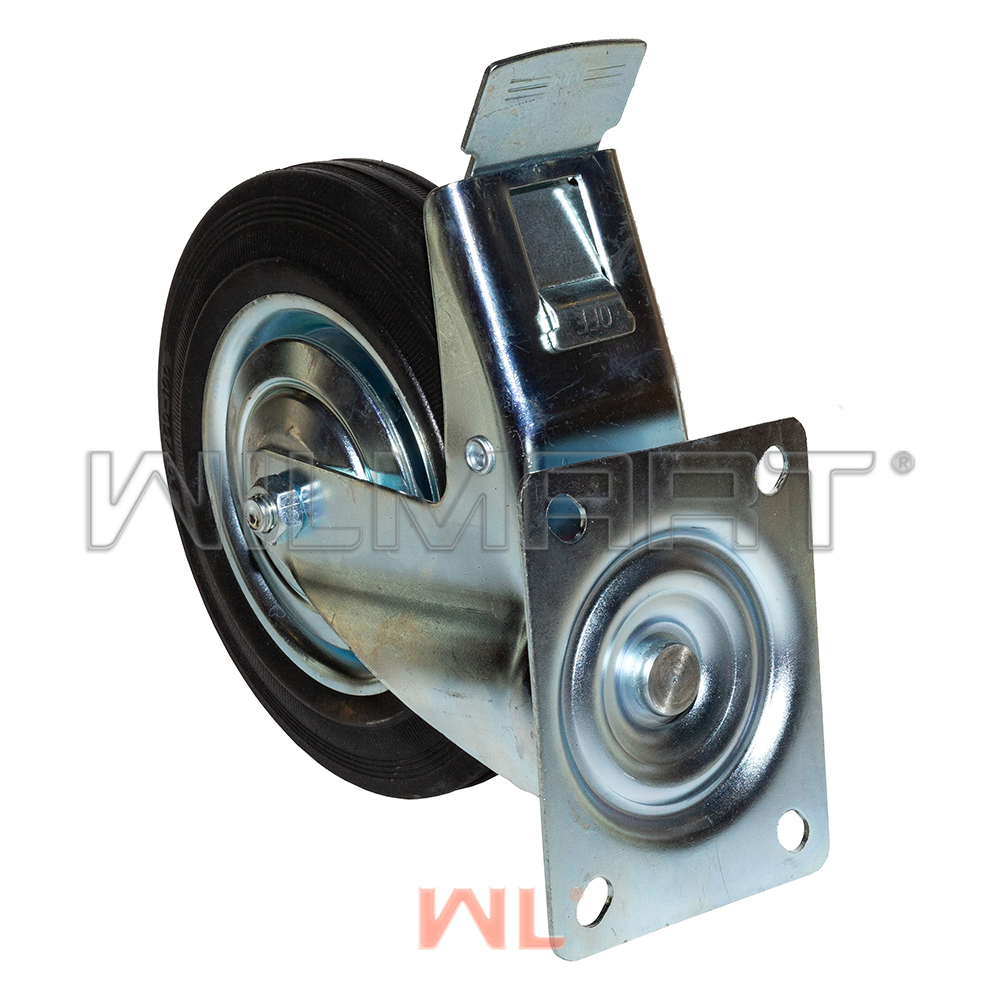 Опора колесная поворотная с тормозом ф200 мм, нагрузка 185 кг, резина (SCb 80)