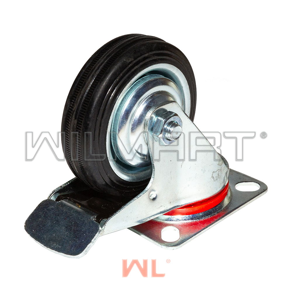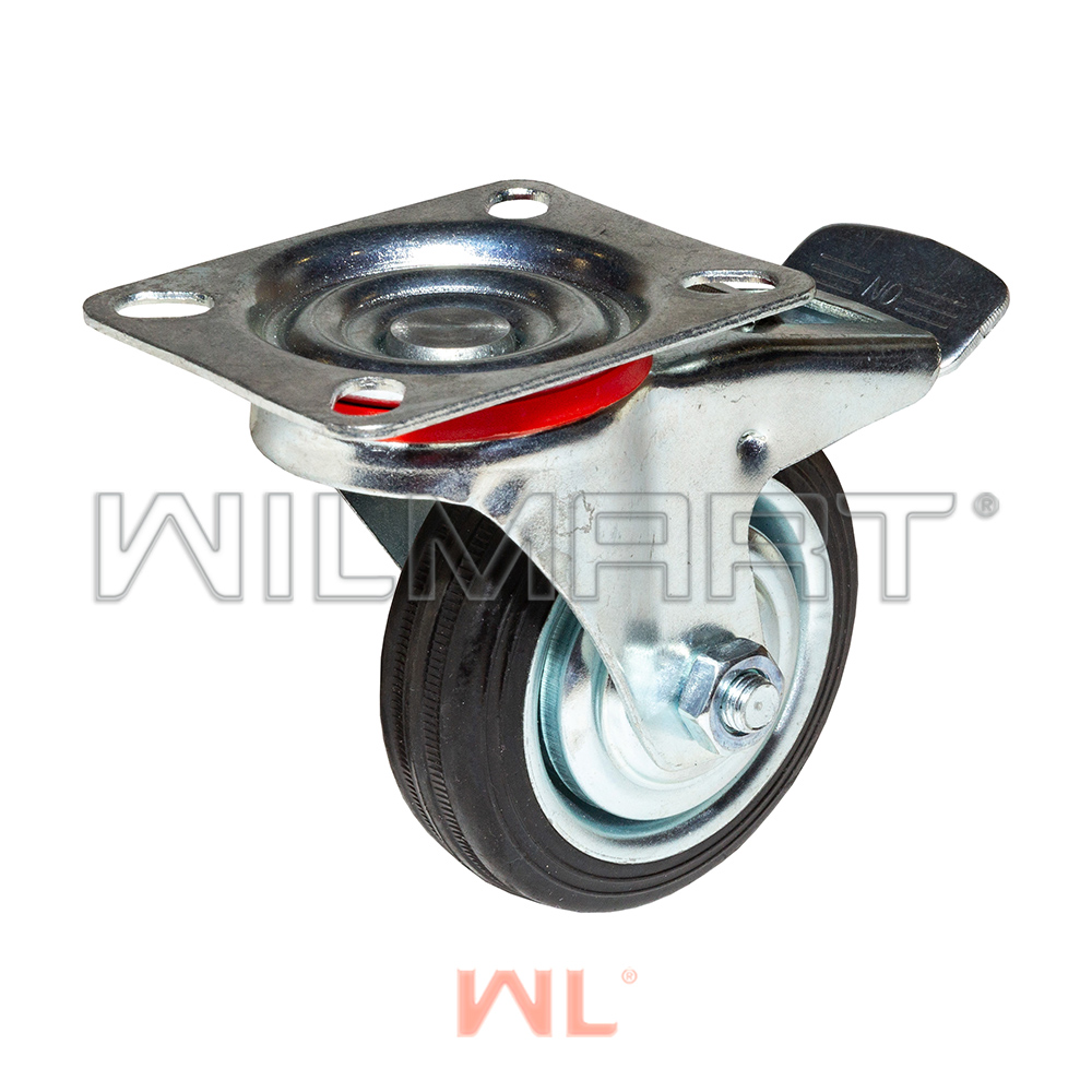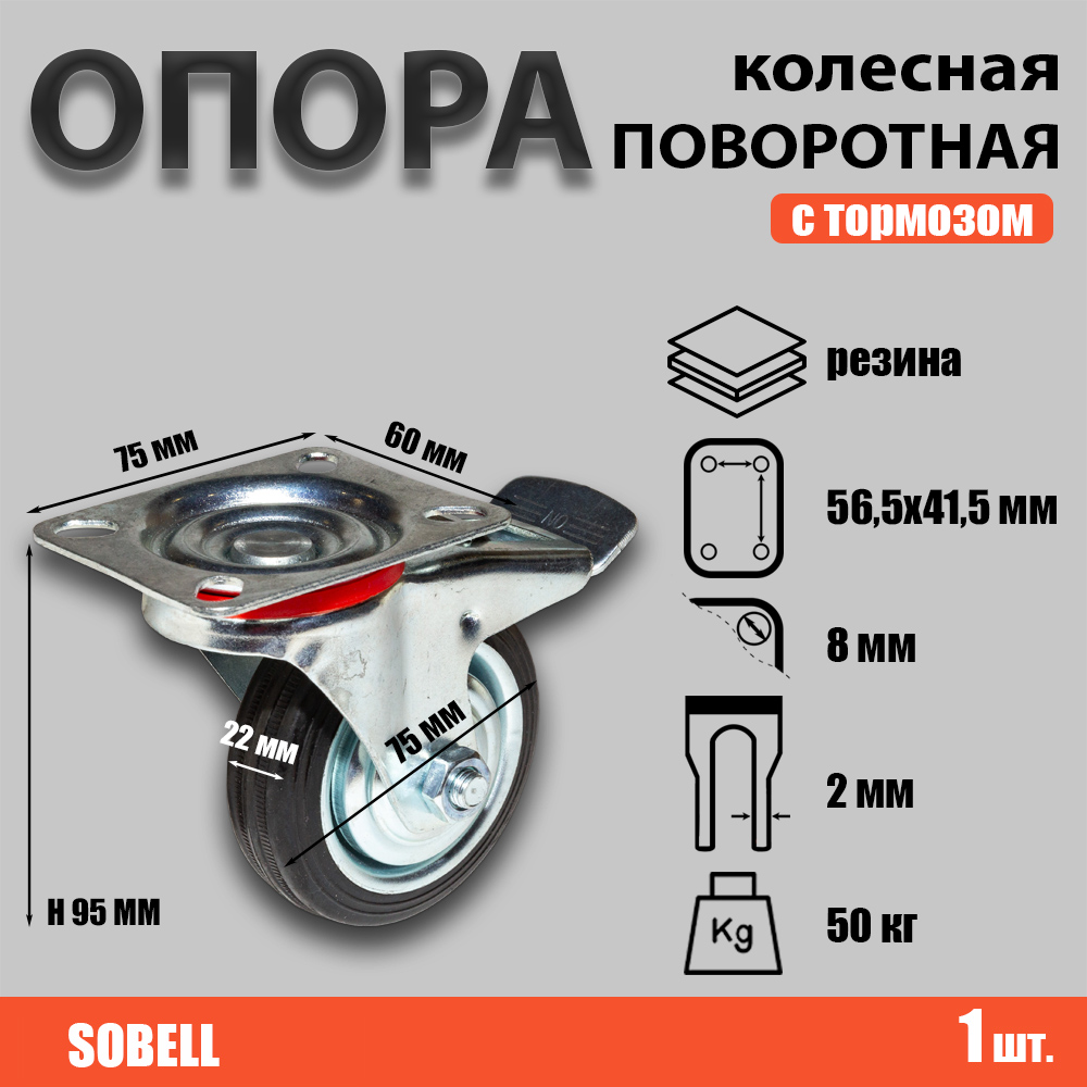 Опора колесная поворотная с тормозом Ф75хS22 мм, 50 кг, резина, SCb 93