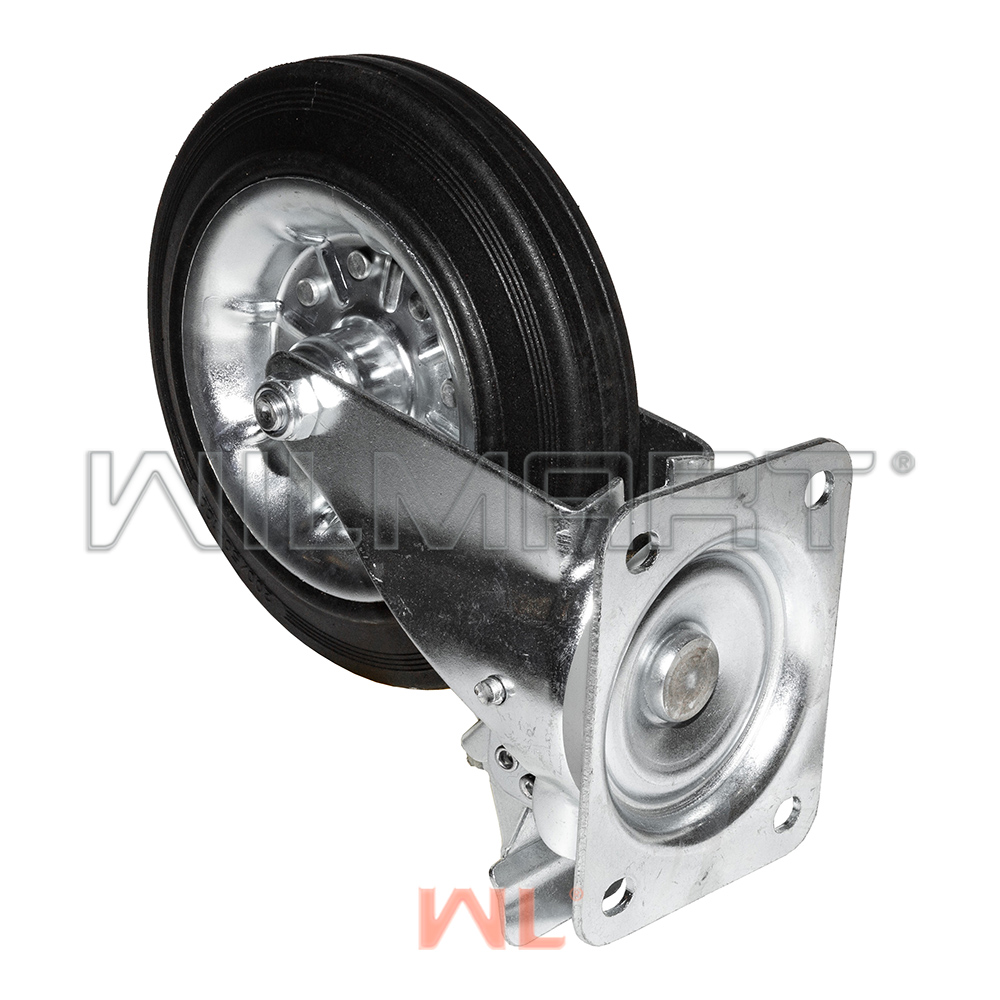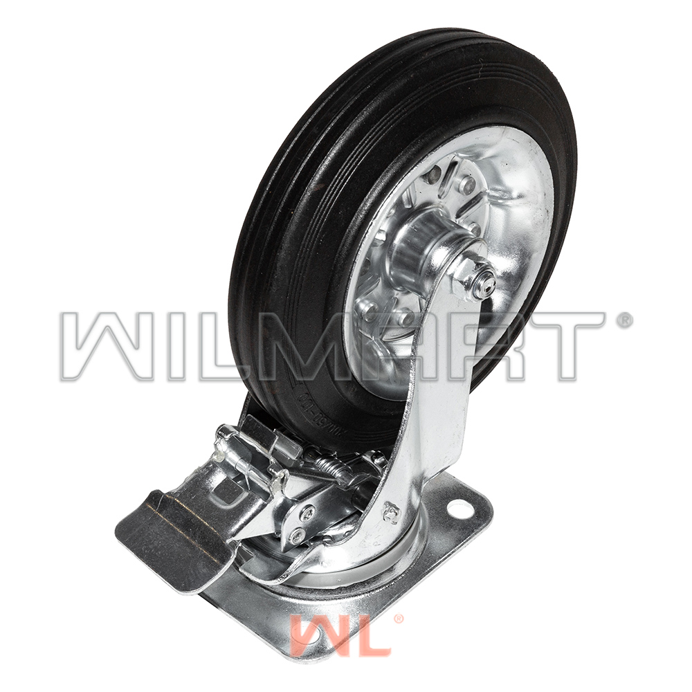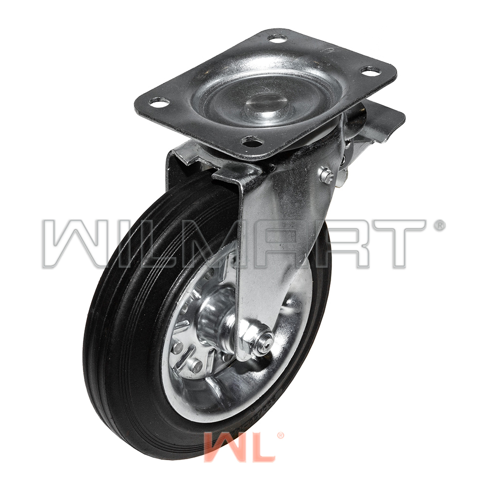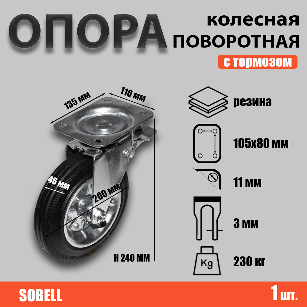 Опора колесная поворотная с тормозом ф200 мм, нагрузка 230 кг, резина (SRCb 80)