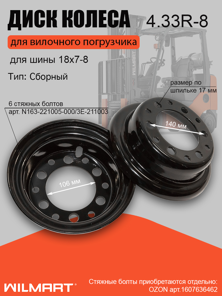 Диск колесный (обод) 4.33R-8 (6х106/140) без стяжных болтов (25PH-211001/25PH-211002) для погрузчика и спецтехники