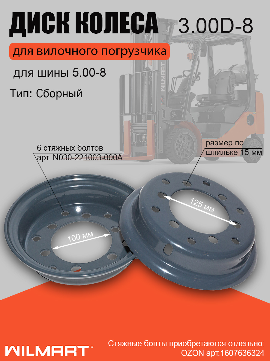 Диск колесный (обод) 3.00D-8 (6х125/ф100) (без стяжных болтов) (21194-40320/21194-40310)
