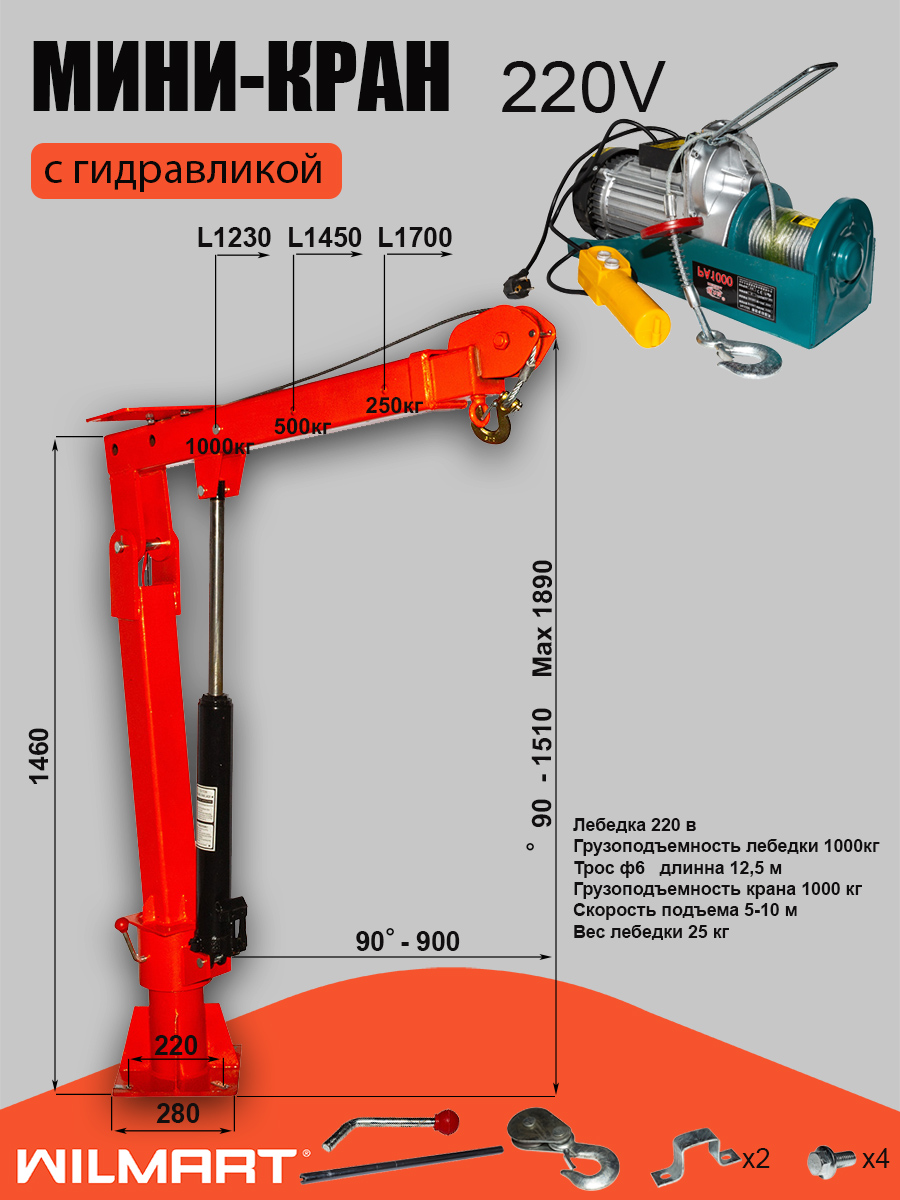 Бортовой кран 220В (мини-кран) (MQC-1000-220V)